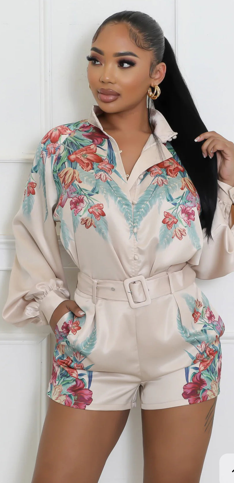 • Non-stretch satin short set